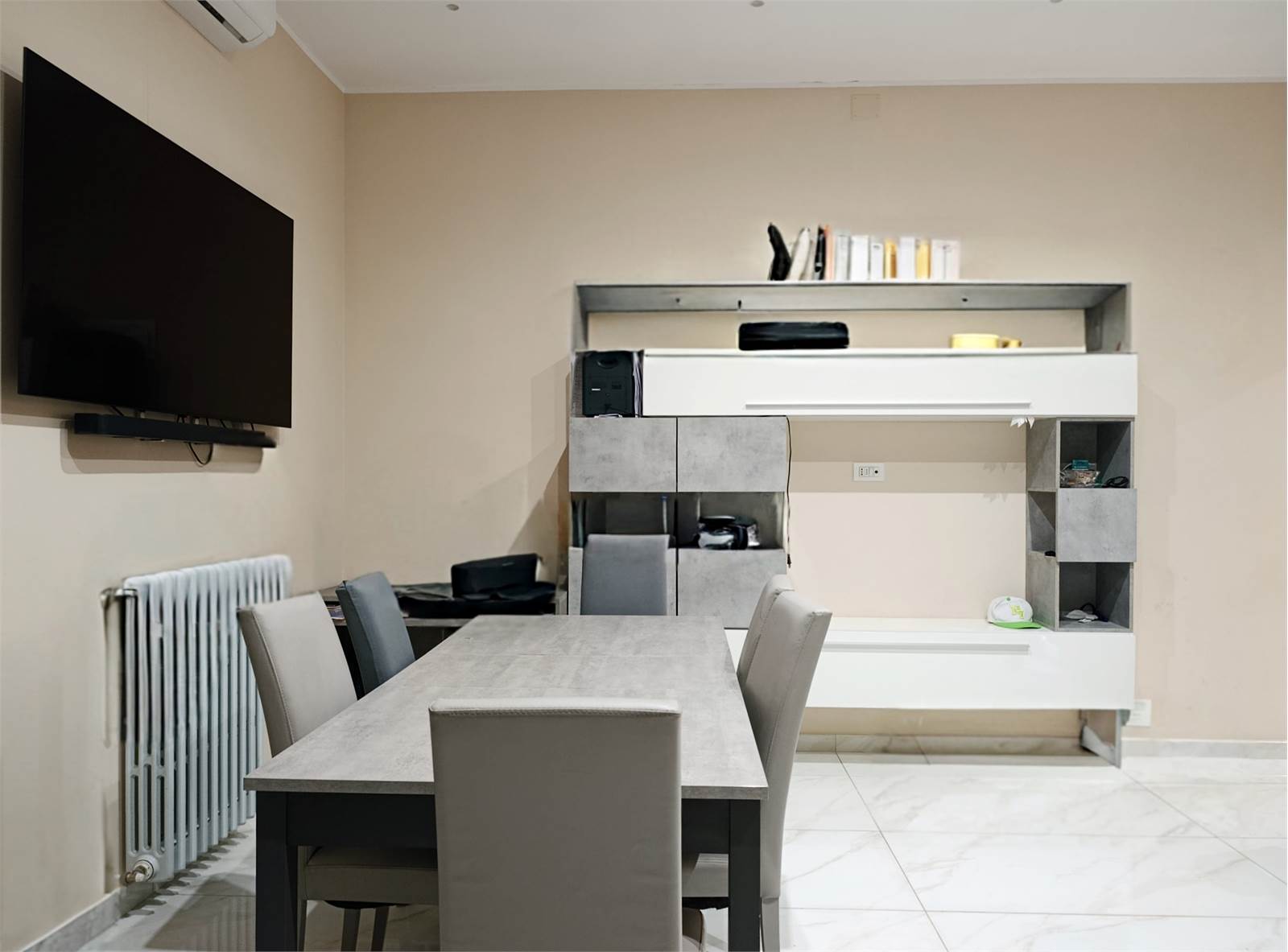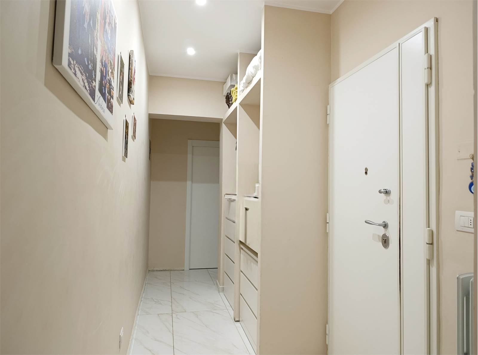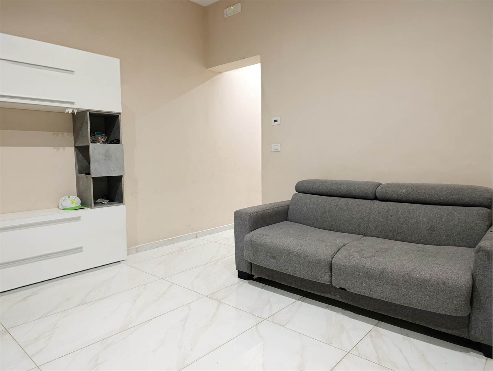 L’appartamento si apre su un luminoso ambiente unico con zona living e cucina a vista, segue una camera da letto matrimoniale, un bagno moderno, un comodo ripostiglio e un pratico armadio a muro nel corridoio.