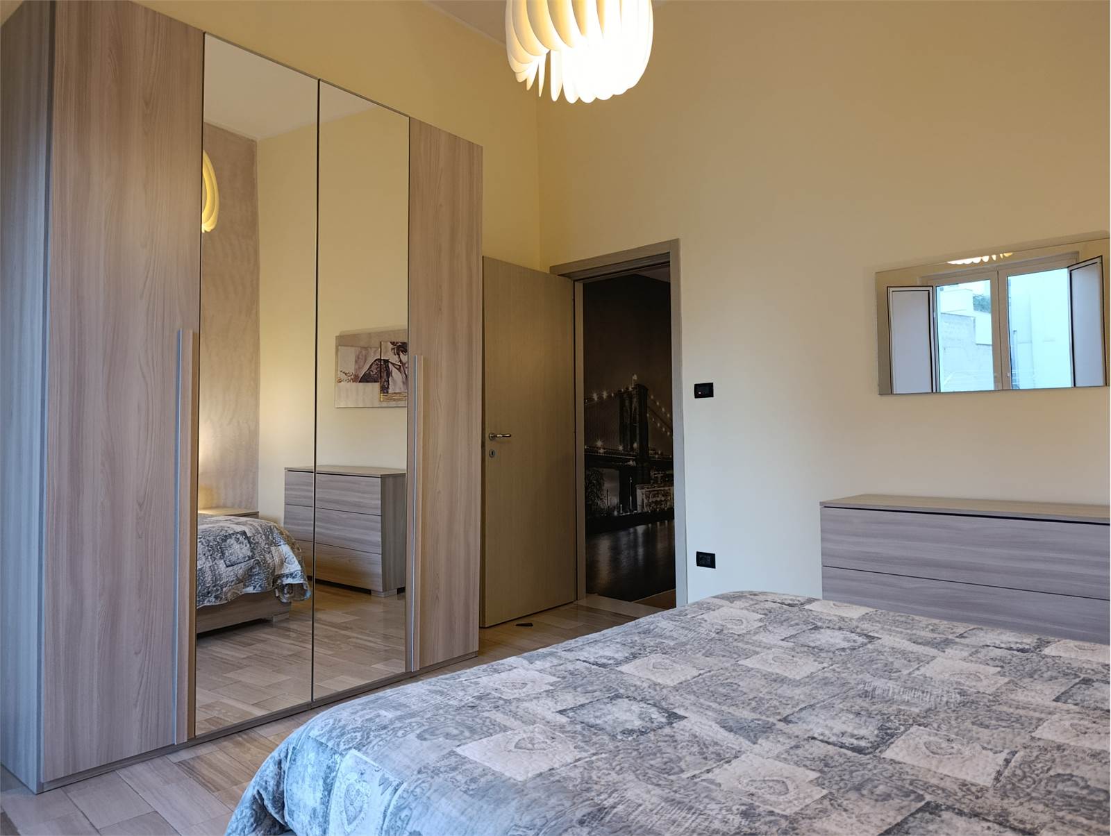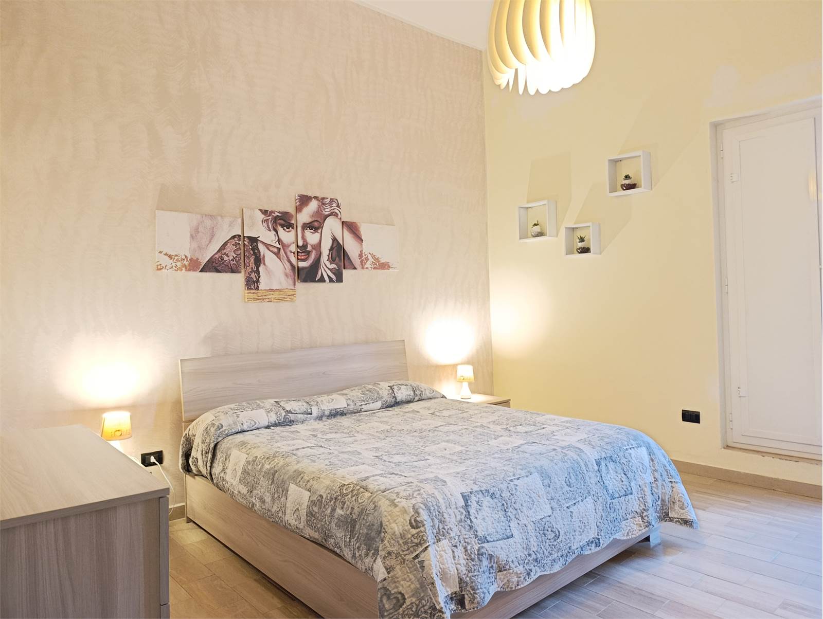La camera matrimoniale, ben proporzionata e intima, offre un’atmosfera tranquilla ideale per il riposo quotidiano. Completa la proprietà un bagno curato nei dettagli, dotato di tutto il necessario per garantire comfort e praticità.