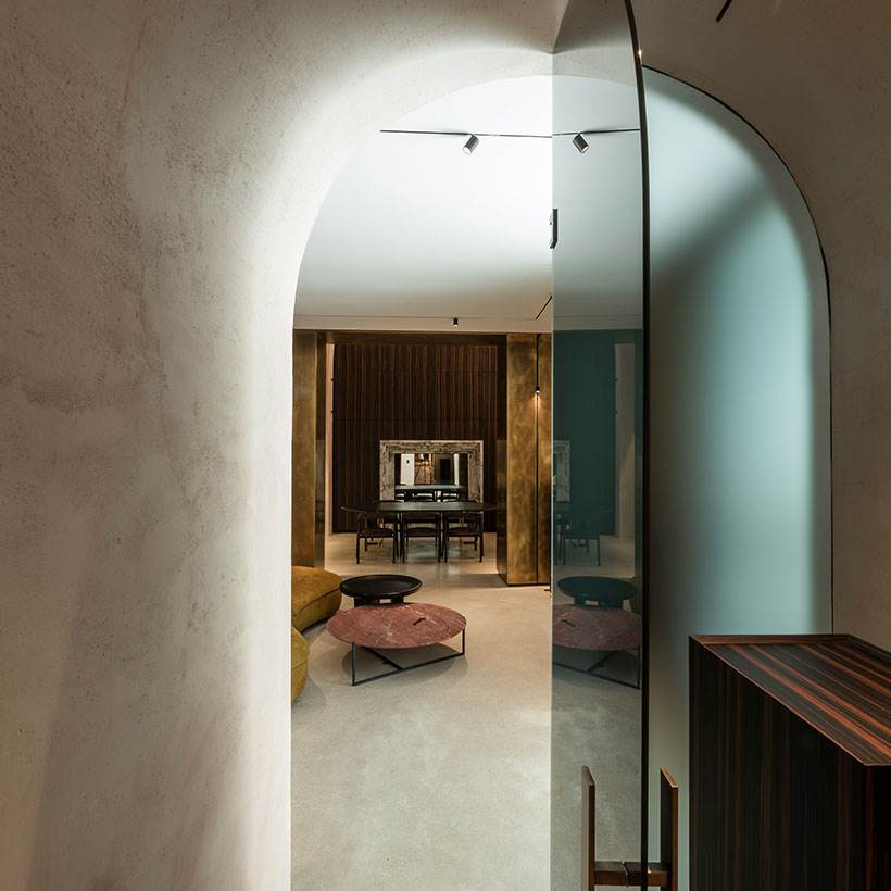 Al piano terra, un ambiente di circa 70 mq con altezza massima di 8 metri è dominato da una chiave di volta che richiama i mascheroni del Castel del Monte, creando un legame diretto con la simbologia federiciana.